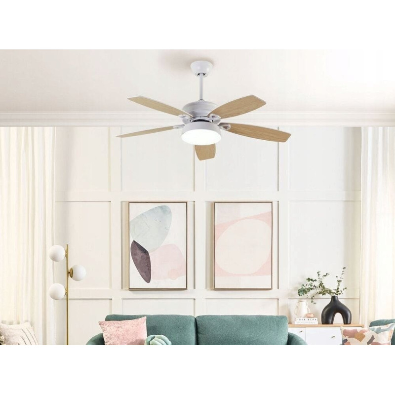 Beliani Wentylator Beliani Wentylator sufitowy biały z jasnym drewnem LOGAN