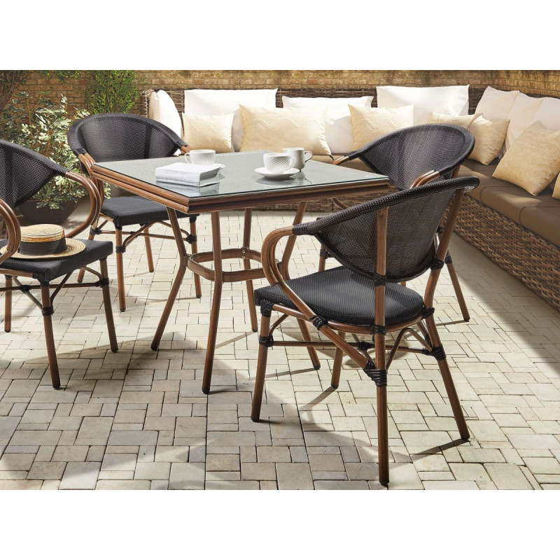 Beliani Zestaw 4 krzeseł ogrodowych ciemne drewno z czarnym CASPRI